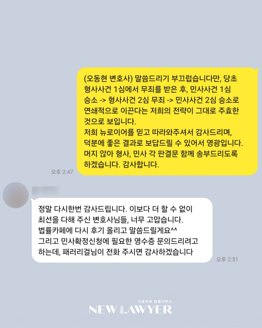 이보다 더 할 수 없이 최선을 다해 주신 변호사님들, 너무 고맙습니다."